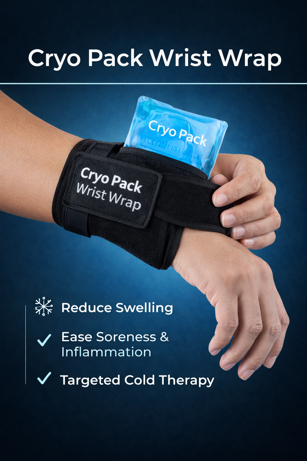 This wrist wrap delivers targeted cold therapy with controlled compression to help calm irritated joints and surrounding soft tissue. Designed to hold a removable cryo pack securely against the wrist, it supports swelling control, post-activity soreness, and flare-ups from overuse or strain. Adjustable straps allow you to fine-tune pressure without restricting movement, making it suitable for short recovery sessions or intermittent daily use.
