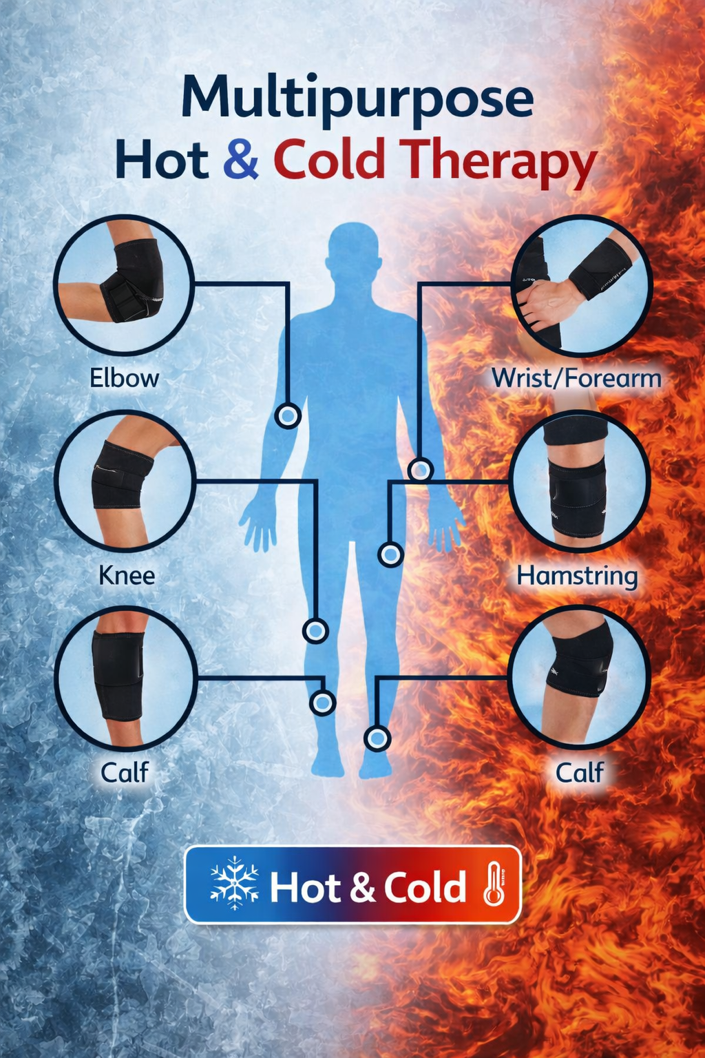 This multipurpose hot & cold therapy sleeve is designed to deliver targeted temperature support to common problem areas such as the elbow, knee, calf, hamstring, and forearm. Use cold therapy to help calm post-activity soreness, swelling, or flare-ups, or apply gentle heat to promote muscle relaxation and improve circulation in stiff or tight areas.