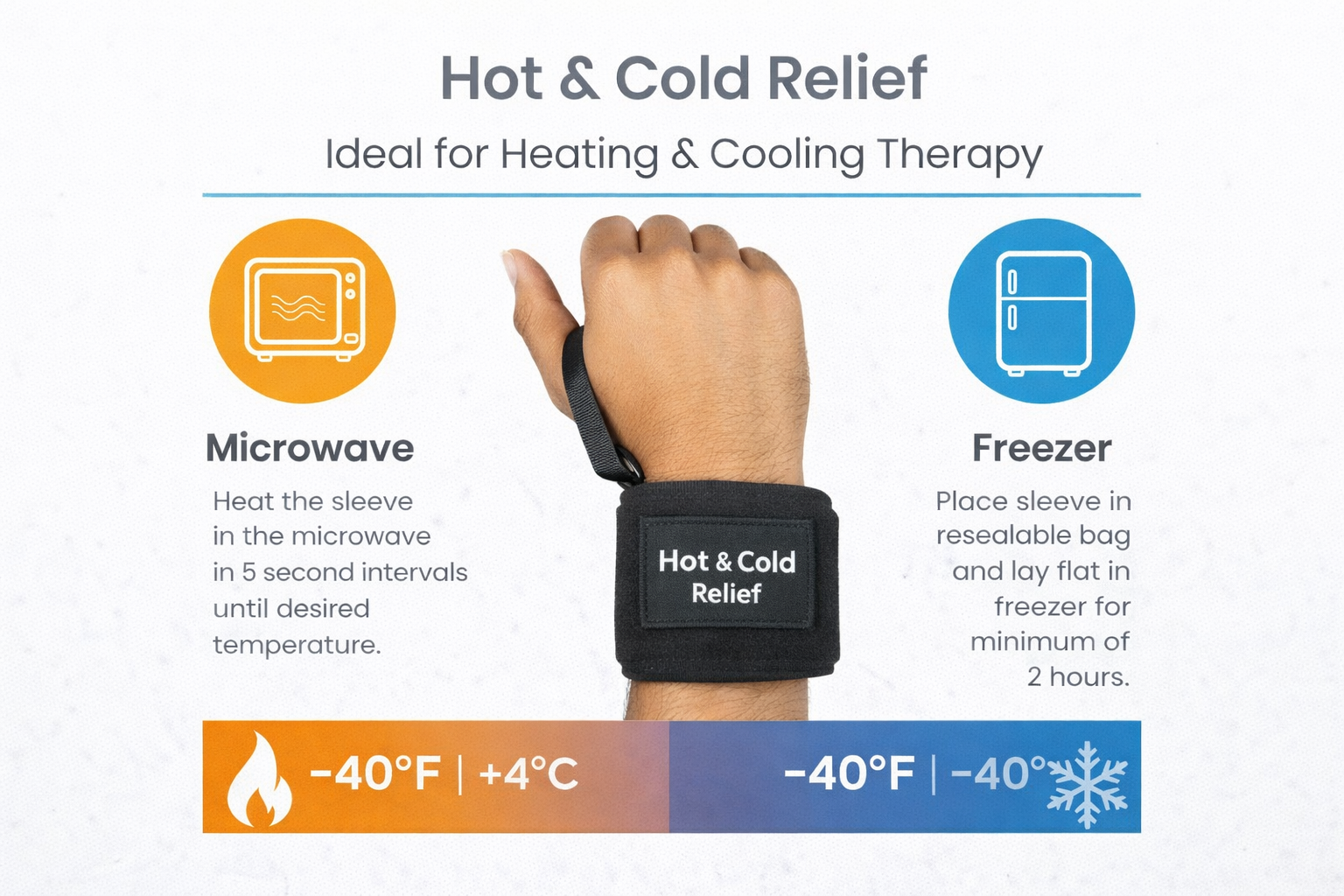 Wraps directly around the wrist joint to deliver focused heat or cold where it’s needed most.