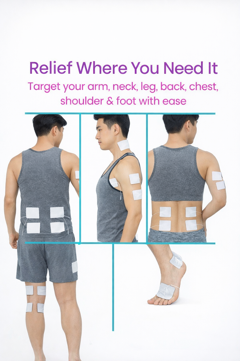 The pads feature a flexible backing that conforms to different body areas and a pre-gelled adhesive layer to support consistent contact during use. A standard 2 mm snap or pigtail connector allows compatibility with most TENS and EMS devices.