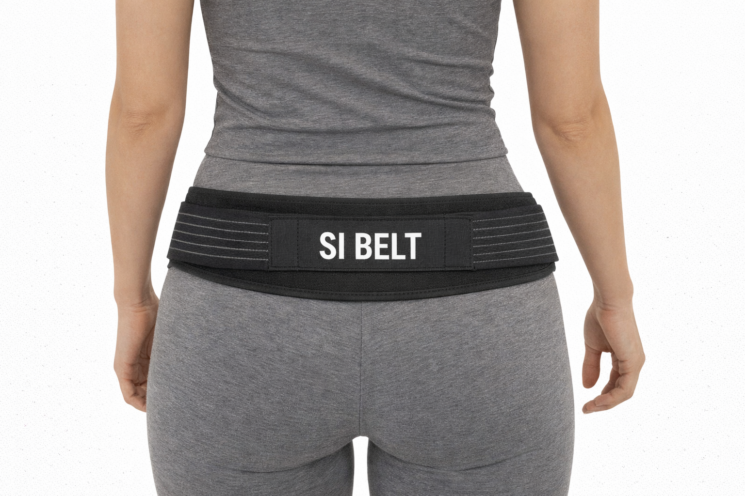 A pelvic stabilization belt designed to provide external compression around the sacroiliac joints by securing the pelvic ring. When positioned low on the hips—across the PSIS landmarks and below the iliac crest—the belt helps reduce excessive shear and micro-motion at the SI joints during standing, walking, lifting, or transitional movements.